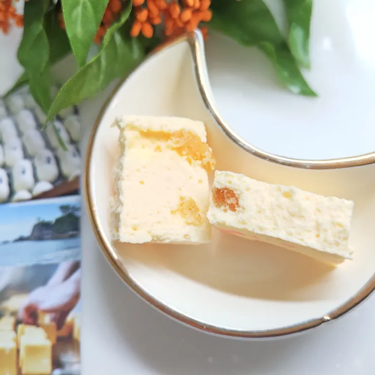 厳選された平飼い卵の黄味と寒天に、柚子を練り込んだ半生菓子なんだそう。