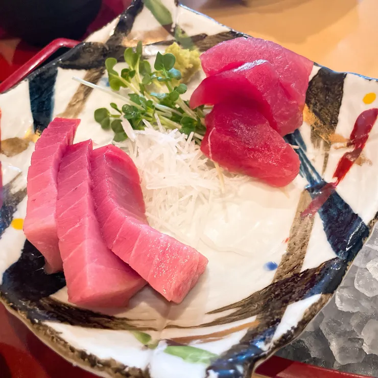 和歌山に居残った翌日のお昼は、紀州の本マグロと日本酒🍶
