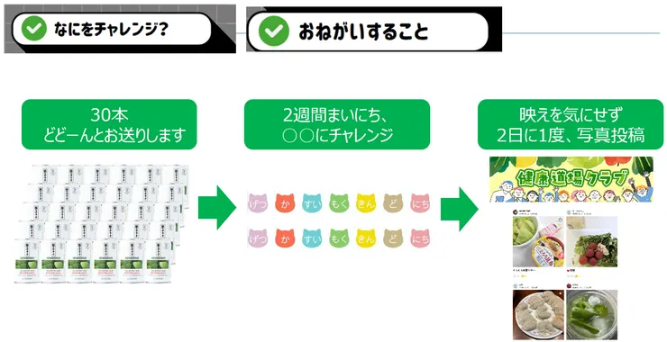 ⑥この14日間=2週間 健康道場クラブ内でチャレンジ内容のお写真を投稿して頂く