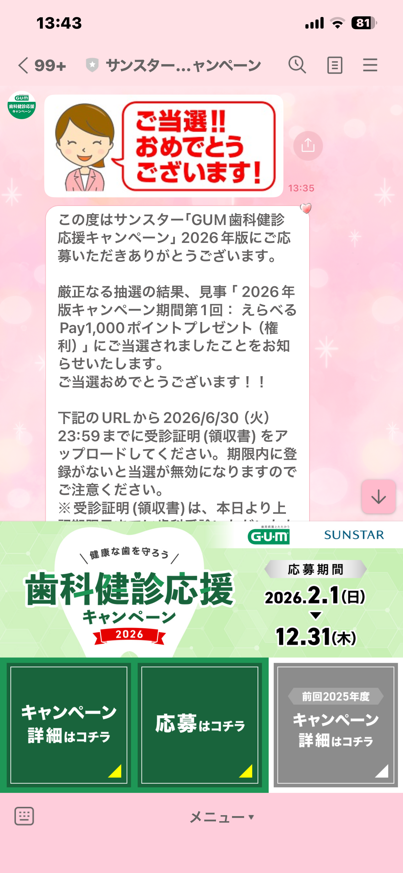 初めての当選だったです、とにかく忘れずに領収書をアップしなければ〜😅