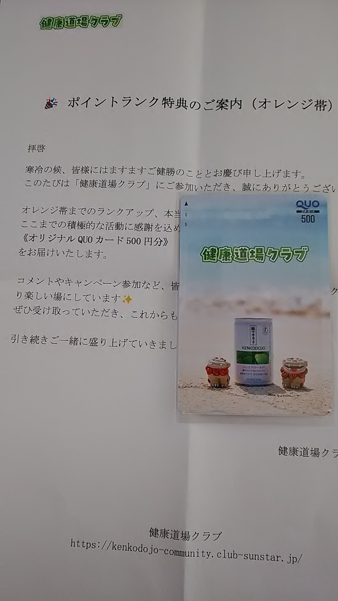 オレンジ帯ランクアップ特典のオリジナルQUOカード良かったですね