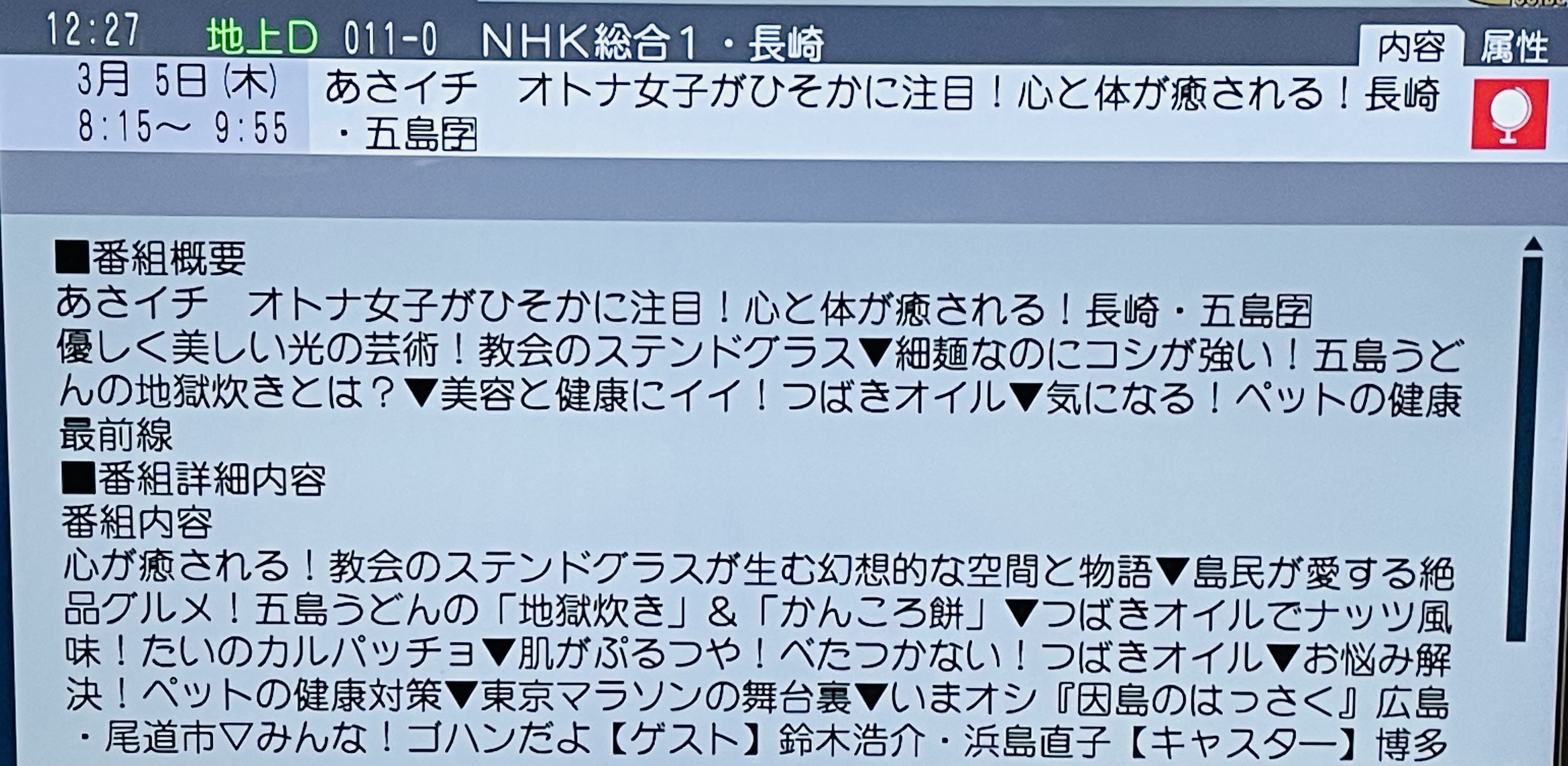 3/5(木)AM8:15〜あさイチ(NHK)で長崎の五島が放送される予定です