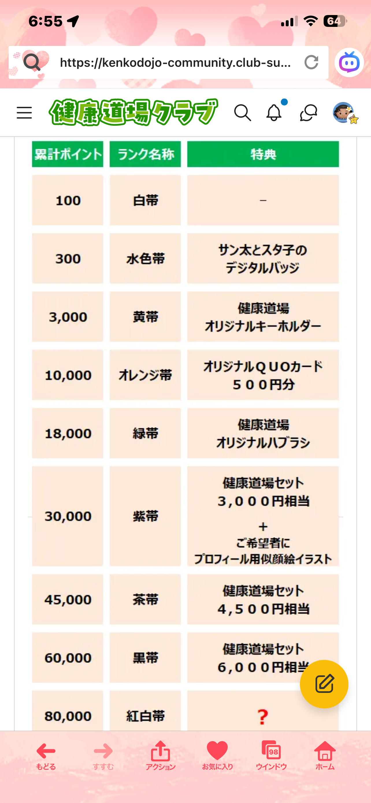 トップ > クラブ活動【写真投稿】 > 健康道場と私 > 緑帯達成の特典が❗️ みゅうみゅう33 2025/10/16 07:03 緑帯達成の特典が❗️ 今気が付きました🫢 健康道場クラブの緑帯達成の特典が変更されてますね😊 ショップクーポン券1000円分➡️オリジナルハブラシへ🪥✨ どんなハブラシなのかなぁ〜⁈ 楽しみです💕 いいね 共有する 共有する X facebook LINE リンクをコピー コメントする 12 件の返信 (新着順) ミュートしたユーザーの投稿です。 投稿を表示 チワウ 2025/10/17 00:11 昨日、緑帯になった時に特典も見に行ったら変わっていてビックリしました😳 どんな歯ブラシなのか楽しみですよね~😆 いいね 返信する ミュートしたユーザーの投稿です。 投稿を表示 みゅうみゅう33 2025/10/18 00:36 チワウ 特典のハブラシ、想像してワクワクしています😊 楽しみですねっ♪♪ いいね 返信する ミュートしたユーザーの投稿です。 投稿を表示 チアスマイル 2025/10/16 17:21 変更されたの気づかなかったです。情報ありがとうございます! いいね 返信する ミュートしたユーザーの投稿です。 投稿を表示 みゅうみゅう33 2025/10/16 18:23 チアスマイル 発見して驚いて投稿しちゃいました〜😅 いいね 返信する ミュートしたユーザーの投稿です。 投稿を表示 たっち 2025/10/16 15:34 おめでとうございます🎉 楽しみですね✨️ そうなんですね ショップクーポン使ってないです💦 確認してみます いいね 返信する ミュートしたユーザーの投稿です。 投稿を表示 みゅうみゅう33 2025/10/16 18:22 たっち やっと…同じ帯になりました💜😊 でも、同じ帯でいるのは短そうですね〜😅 追いつけない〜〜💦 いいね 返信する ミュートしたユーザーの投稿です。 投稿を表示 たっち 2025/10/16 20:50 みゅうみゅう33 紫の先はけっこう険しいです💦 気にしないで過ごすのが一番🤍✨️ いいね 返信する ミュートしたユーザーの投稿です。 投稿を表示 masumifumi 2025/10/16 11:29 変更になってたんですね~ 気づいてなかったです💦 教えてくださってありがとうございます😊 歯ブラシ、やっぱり緑色なのかな~? いいね 返信する ミュートしたユーザーの投稿です。 投稿を表示 みゅうみゅう33 2025/10/16 18:16 masumifumi ハブラシ…緑色⁉️かもですね😊 もしかしたらキャラクター付き…てつさんの顔とか…(笑)🤭 いいね 返信する ミュートしたユーザーの投稿です。 投稿を表示 ココロ 2025/10/16 10:42 わぁ~そうなんですね 楽しみですね 歯ブラシ💛嬉しいですよね 私も連絡を頂いたので住所入力しました 皆さんとお揃えの キーホルダーが届くの楽しみです💗 ワクワク~💛 いいね 返信する ミュートしたユーザーの投稿です。 投稿を表示 みゅうみゅう33 2025/10/16 18:13 ココロ ハブラシはどんな感じなんでしょうね〜😊 キーホルダーはとっても可愛いくて感動ですよ💖 いいね 返信する ミュートしたユーザーの投稿です。 投稿を表示 ココロ 2025/10/17 00:45 みゅうみゅう33 歯ブラシ届いたらまた見せて下さいね 楽しみにしていますね いいね 返信する ミュートしたユーザーの投稿です。 投稿を表示 ゴマちゃん 2025/10/16 09:33 みゅうみゅう33 緑帯達成おめでとうございます! 特典の一覧があるのですね、知りませんでした。 私は今回キーホルダーを頂けるのを楽しみにしていたところです。 3万ポイントで似顔絵…長い道のりですがいつか描いてもらえるように頑張ってみようかな♡ いいね 返信する ミュートしたユーザーの投稿です。 投稿を表示 みゅうみゅう33 2025/10/16 18:12 ゴマちゃん あの…あの…緑帯の次に進んだので特典を見てみたのです〜😅 キーホルダー、楽しみですね♪ とっても可愛いですよ💕 いいね 返信する ミュートしたユーザーの投稿です。 投稿を表示 ゴマちゃん 2025/10/16 18:21 みゅうみゅう33 あっ、次の紫帯に進んでらっしゃったのですね。失礼しました💦 特典色々あって楽しみですね。 いいね 返信する ミュートしたユーザーの投稿です。 投稿を表示 翼が欲しい虎 2025/10/17 09:55 ゴマちゃん 描いて頂いた似顔絵を使っています。 自分でも似ていると思いますが、 実物より良いイメージ(特に若め)のような気がします。 いいね 返信する ミュートしたユーザーの投稿です。 投稿を表示 がきさん(健康道場クラブマネージャー) 2025/10/16 08:56 みゅうみゅう33 パリ チョビクロ yume 浦ちゃん母 ご連絡が前後して申し訳ございません。 本日、変更になった旨のマネージャー通信を発信しようと思っていたところでした。 楽しみと言っていただき嬉しい&恐縮です 🙇♀️変更のご連絡を今しばらくお待ちください🙇♀️ いいね 返信する ミュートしたユーザーの投稿です。 投稿を表示 みゅうみゅう33 2025/10/16 18:10 がきさん(健康道場クラブマネージャー) これから発表予定だったのですね♪ ビックリした勢いで投稿しちゃいました〜😅 いいね 返信する ミュートしたユーザーの投稿です。 投稿を表示 rabbit 2025/10/16 08:54 おめでとうございます!楽しみですね♪ いいね 返信する ミュートしたユーザー