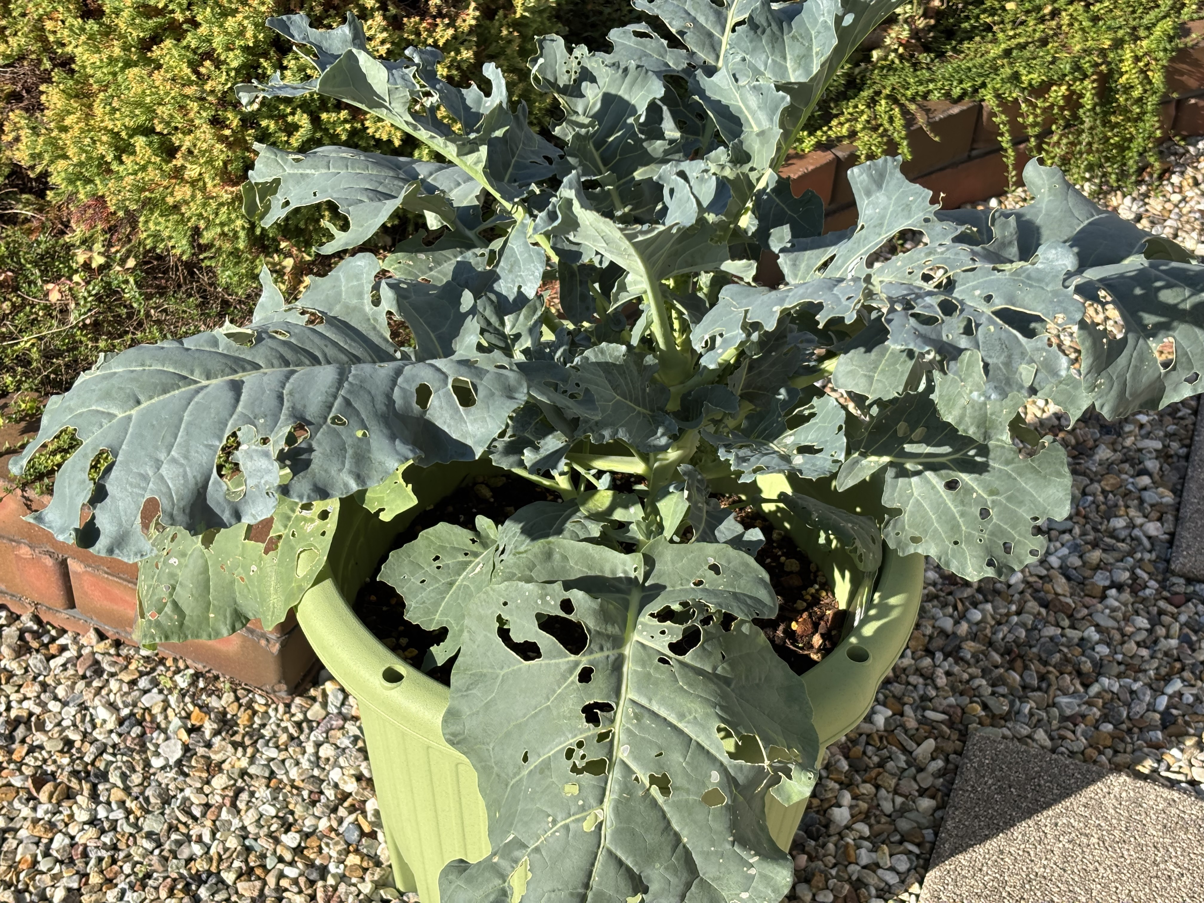 うちのも酷いですが、これだけ食べられてもスクスク成長して、植物の生命力を感じますね。