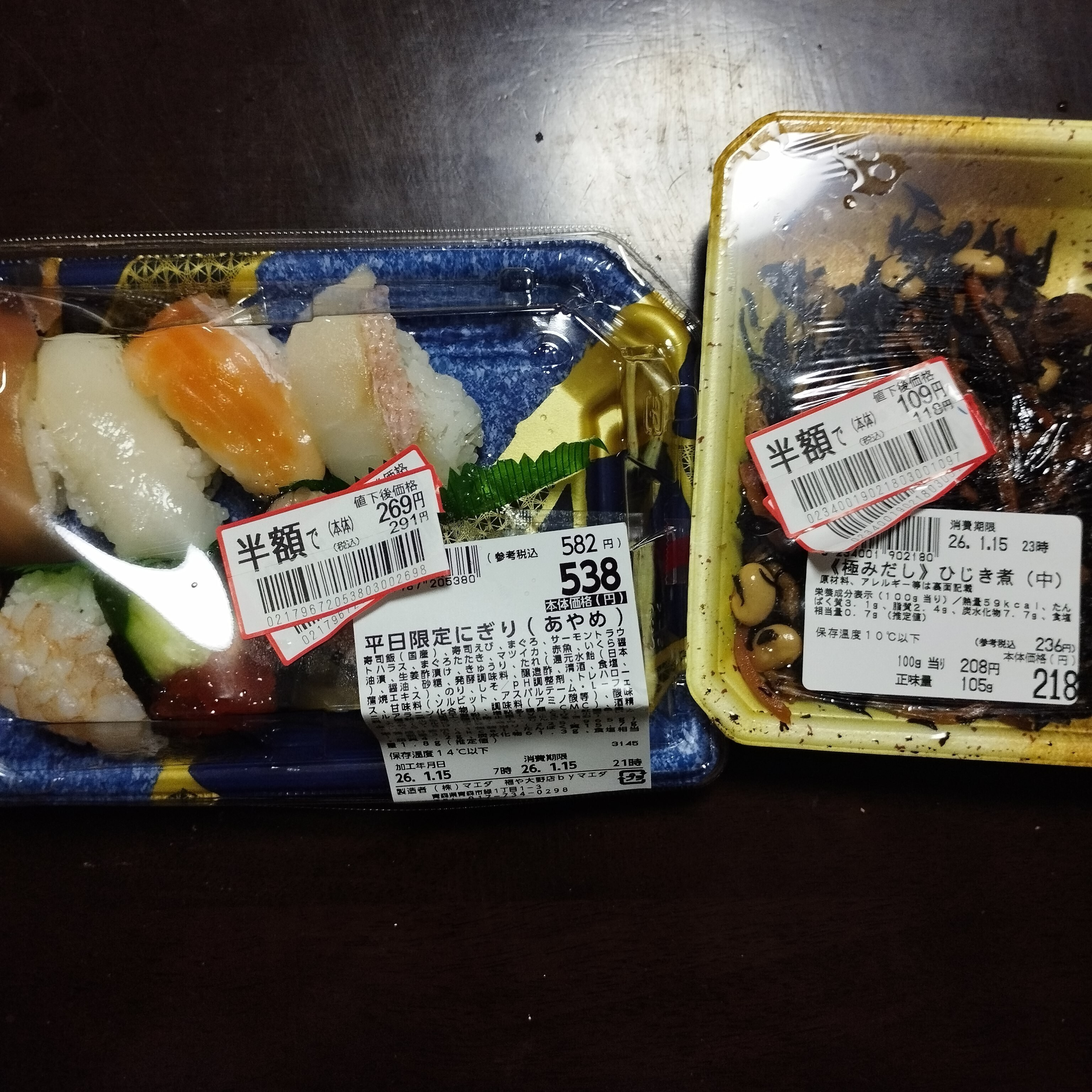 投稿を表示半額で握り寿司