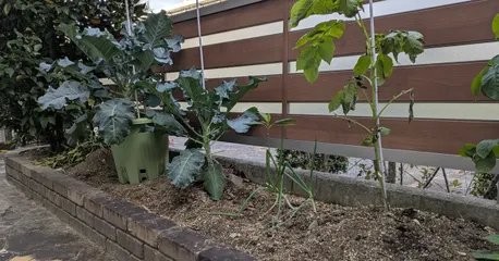 12/9 本日のブロコ 肉眼で見ると葉の間から少し蕾が見えています じゃが1号はどんどん枯れていますもう少ししたら掘ってみます🥔