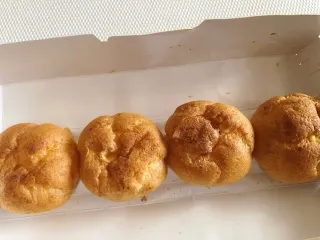 おやつにヒロタのシュークリーム食べましたエコバッグパンパンで箱が壊れそうになっていましたがシュークリームは無事でした。チョコレートも買えば良かったなぁ~久しぶりに懐かしく感じました カスタードクリームでした💛